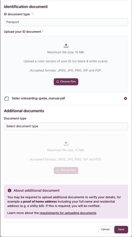 Înregistrarea vânzătorului ne ajută să vă verificăm identitatea și este cunoscută și sub denumirea de verificare KYC (Know Your Customer).